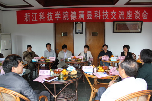 10月26日,德清县科技局党组书记、局长徐羚,副局长步农建、吴克俭 、刘根良、王敏等一行5人来校访问考察及座谈。机械等10个学院及科技处负责人和老师参加座谈交流。