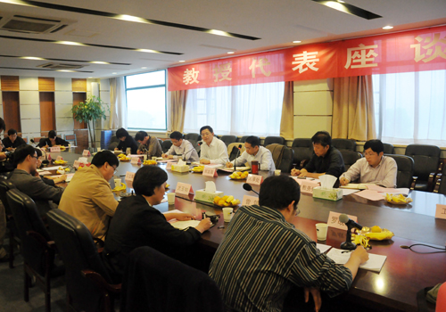 在认真听取了与会代表的发言后,王建华充分肯定了教授们对学校事业高度负责的态度和积极向上的精神风貌,他代表学校党委对教授们在学校发展建设中发挥的积极作用表示衷心感谢。王建华强调,学校将继续坚持和完善“党委领导、校长负责、教授治学、民主管理”的十六字方针,进一步发挥教授在学校建设发展中的重要作用,使教授治学理念得到更加充分体现。他希望,广大教授继续一如既往地发挥主人翁精神,为学校的建设发展积极主动建言献策,为学校在“十二五”期间再上新台阶做出贡献。