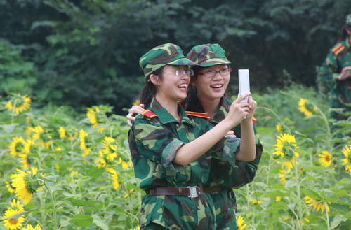 这两天,不少军训新生三五成群来到向日葵地,西蜜湖畔,与向日葵、白鹭合影,把自己的飒爽英姿和学校美景发回家。浙江日报对这一活动作了报道(http://zjdaily.zjol.com.cn/html/2011-09/13/content_1082541.htm?div=0)。