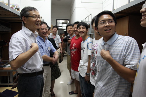 9月3日晚,校领导在相关职能部门负责人陪同下分三组分别来到西和和听松学生公寓走访看望新生。截至当晚,已有3874名2011级新生报到。