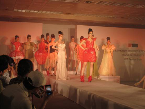 东新大学校长金毕植等主要校领导均观看了展演。展演共展示服装60套,韩方和中方学生各30套。东新大学宝石工程学系学生提供的服饰设计品更让服装表演锦上添花。