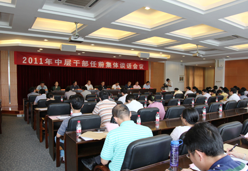 6月16日,学校召开中层干部任前集体谈话会。校党政领导班子成员出席会议。校党委书记徐志平讲话,副书记周加敏主持会议。新一届中层干部参加会议。