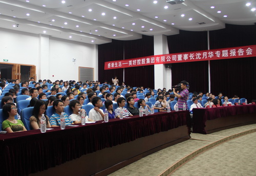 当晚的活动中,沈月华向大学生们讲述了自己跌宕起伏的人生经历。从艰难求学、白手起家到创业投资的故事,让在场听众受益匪浅。她用自己的亲身经历勉励大学生,遇到困难要“面对它,迎接它、处理它、放下它”。沈月华说,人生有三大误区,即看不见目标,看不清自己,看不起脚下事情,每个人都要有清醒的认识。