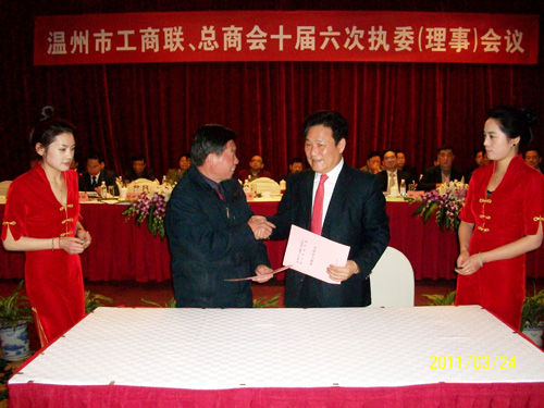 3月24日,申搏与温州市总商会签署了战略合作协议,正校级巡视员胡浙平代表学校在合作协议上签了字,科技处、学生处等相关单位负责人参加签约仪式。