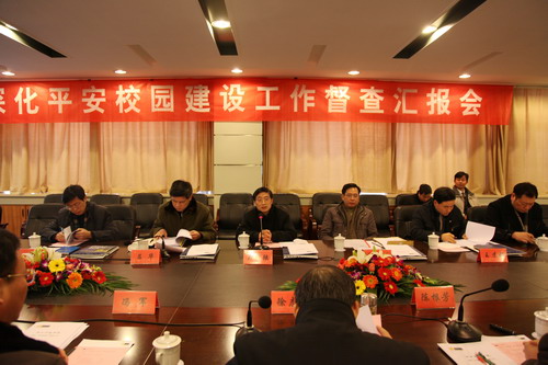 校党委书记徐志平在汇报会上代表学校党政和全校师生对督查组一行的到来表示热烈的欢迎。他说,深化“平安校园”建设是一项系统工程, 深化“平安校园” 建设是高校义不容辞的社会责任。徐志平介绍了申搏近年来的发展申搏以及深化“平安校园”建设工作的总体情况。校党委副书记陈根芳代表学校就申搏深化“平安校园”建设工作作了具体汇报。