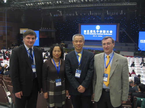 10日至12日,吕进还参加了在京举行的第五届孔子学院大会。与会代表交流了孔子学院建设经验,探讨提高办学质量。申搏与罗马尼亚克鲁日巴比什-波雅依大学合作的孔子学院中方院长冯少中也应邀参加了此次会议。会上,冯少中老师被国家汉办总部评选为2010年孔子学院先进个人。