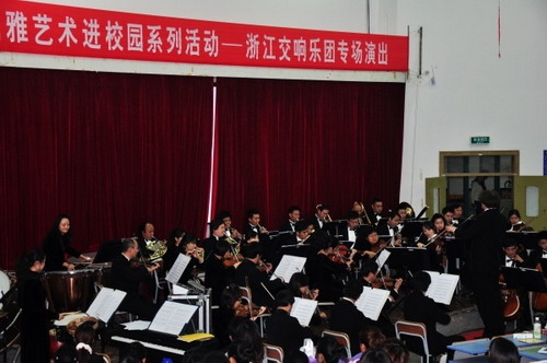 11月8日晚,由浙江省教育厅、文化厅、财政厅共同主办的“高雅艺术进校园”系列活动之一——浙江交响乐团专场演出在申搏举行,乐团首席指挥、德国指挥家埃拉胡•冯•艾伦巴赫担任本场演出指挥,600多名师生一起聆听了精彩的音乐之声。艾伦巴赫是第一位受聘于文化部与官方签约的外籍指挥家。