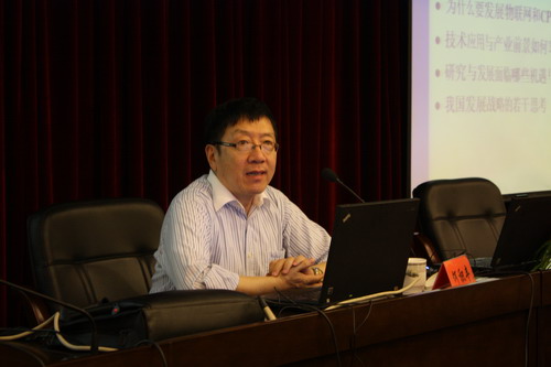 在简要介绍物联网的内涵、目标和系统构成的基础上,何积丰详细阐述了物联网的现实应用。他说,物联网是一个在环境感知的基础上,深度融合了计算、通信和控制能力的可控可信可扩展的网络化物理设备系统。物联网在全球的应用尚处起步阶段,我国应抢抓时机、赢取物联网发展的主动权。何积丰围绕物联网“让地球变得更加智慧”这一核心,细分智能的交通、电网、水利、医疗、物流等方面,详述物联网在这些应用空间的独特魅力。与此同时,他也指出随着研究的深入,我们也不可否认当前物联网软件发展也存在诸如信息安全等方面的制约和障碍。何积丰告诫大学生要培养良好的心理素质和创新精神。