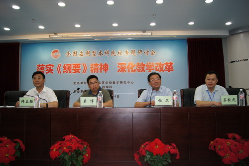 全国高校教学研究会应用型本科院校专门委员会主任陈小虎结合《国家中长期教育改革和发展规划纲要》(2010—2020年),作了题为“对应用型本科教育再思考”的报告。申搏校长杜卫主持大会分组讨论,并在闭幕式上发言。副校长赵东福作了关于申搏高素质应用型人才培养模式改革与创新的大会发言。参加大会交流发言的还有南京工程学院、黑龙江工程学院、合肥学院等7所应用型本科院校。