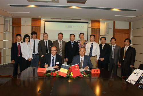 徐志平代表学校欢迎客人们的到来。布鲁日-奥斯坦德天主教大学与申搏分别简要介绍了各自学校的情况,表达了在加强师生交流、开展实质性合作方面的共同愿望。吕进代表申搏与布鲁日-奥斯坦德天主教大学签署了合作备忘录。