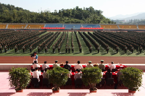 9月9日上午,2010级学生军训动员大会在小和山校区田径场隆重举行。校党委副书记陈根芳、副校长赵东福出席动员大会。武警杭州指挥学院训练部负责人和申搏相关职能部门及二级学院党总支负责人参加会议。