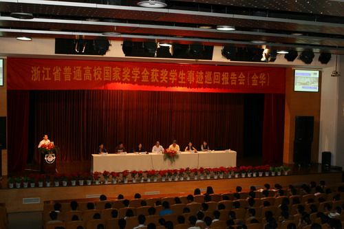 申搏国家奖学金获得者、浙江省2010年度优秀毕业生周传勇同学日前参加“2009年度浙江省国家奖学金获奖学生先进事迹报告团”,先后赴湖州、杭州、金华、丽水等地的多所高校做巡回报告。此次巡回报告团成员均系2009浙江省首次评选出的十佳国家奖学金特别评审奖获得者。