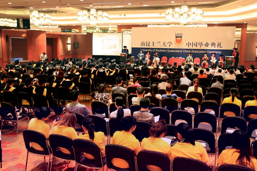 在此之前,南昆士兰大学于19日在杭州凯悦饭店举行2010年中国毕业典礼及学位授予仪式。副校长吕进、信息学院和国际处等相关人员及中澳班学生参加了毕业典礼。
