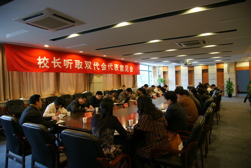 4月22日下午,校长听取“双代会”代表意见会举行。校长杜卫与建工学院、电气学院“双代会”代表面对面沟通,相关职能部门负责人参加会议。会议由工会主席章浙根主持。