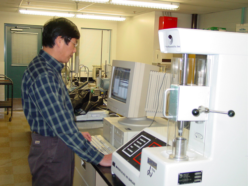 图为作者在加拿大造纸研究院进行实验
