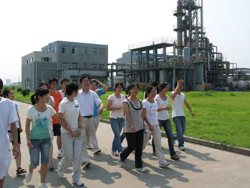 图为作者带学生在行业高新企业参观实习