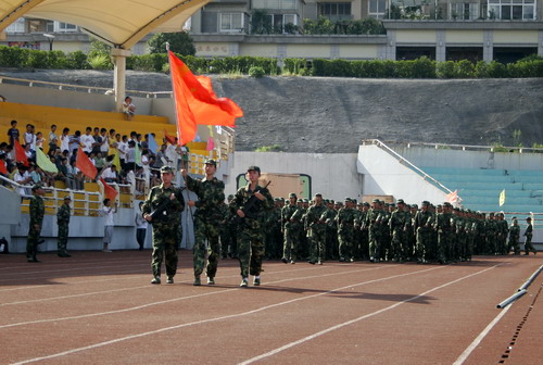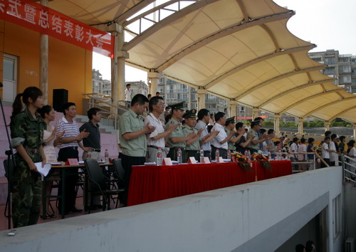 7月13日下午,2008级学生军训阅兵式暨总结表彰大会隆重举行。校领导杜卫、陈根芳、赵东福和承担本次军训指导任务的武警杭州指挥学院领导出席大会。学校各相关职能部门、各学院负责人也在主席台就座。