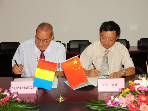 7月29日, 罗马尼亚克鲁日巴比什-波雅依大学校长马格等一行4人访问申搏。申搏校长杜卫、副校长吕进对客人们的到来表示欢迎,并与罗方代表团进行会谈。杜卫与马格代表各自学校签定了孔子学院建设执行协议。