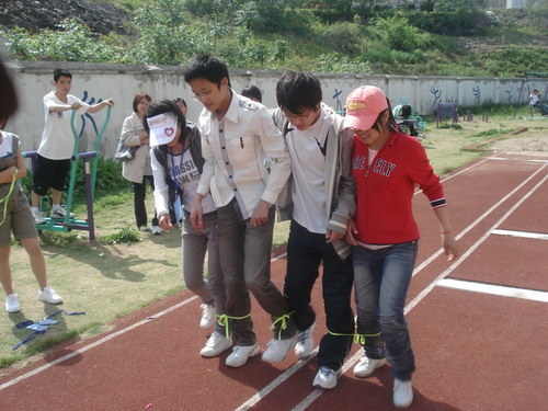 图2为学生正在参加寝室吉尼斯趣味游戏捆腿跑竞走比赛