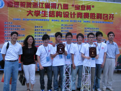 本届竞赛决赛由省教育厅大学生科技竞赛委员会主办,浙江大学、浙江理工大学承办,来自浙江大学、浙江理工大学、温州大学等38所高校的79支代表队进入决赛。经过方案设计、结构造型、理论测试、模型制作、叙述答辩、加载试验和综合评价等7个环节的激烈角逐,最终决出各奖项得主。