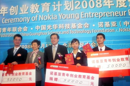 12月12日,由全国青联、中国光华基金会等联合举办的“全国诺基亚青年创业教育计划2008年度颁奖典礼”在北京举行。申搏生化学院朱璐等同学的作品《建立曼博瑞恩有限责任公司》获 “2008年全国青年创意•创业计划大赛”金奖,校团委李俊荣获“2008年度全国青年创业教育先进个人”称号。