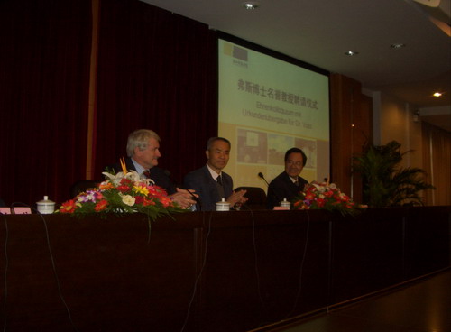 11月21日,学校举行名誉教授聘任仪式。副校长吕进代表学校向德国西门子公司低压电器部总经理Voss博士颁发聘书。仪式后,Voss博士为电气学院师生作了题为“从机械到电子的发展趋势改变着全球低压电器市场”的专题报告。