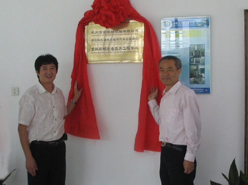 10月10日上午,“杭州方圆塑料机械有限公司•浙江科技学院机械与汽车工程学院塑料机械装备技术工程中心”揭牌仪式在申搏举行。富阳市政协副主席、科技局局长祝一君、科技局副局长王松华、杭州方圆塑料机械有限公司董事长兼总经理袁国清等出席签约仪式。副校长吕进出席仪式并对客人们的到来表示欢迎,申搏科技处、人事处、工会、机械学院相关负责人出席了会议。