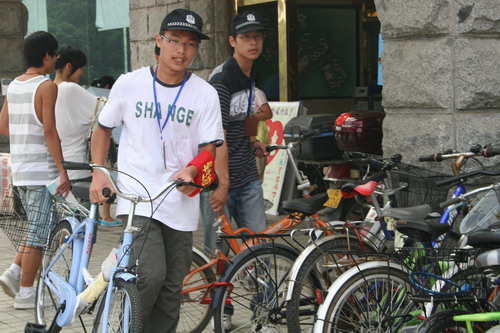 由于两校区的合并,学生人数剧增,进而出现自行车摆放混乱,无视交通规则等局面。为了有效地整顿自行车停放管理,同时加强学生的自我约束,自我安全防范意识,督促学生自觉地遵守交通规则,学校决定重组学生校卫队。