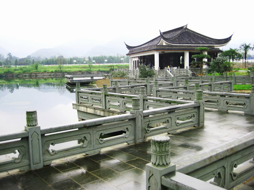 和兴居茶楼四面环水,以和兴曲桥与岸相连。茶楼居于湖心岛东面,西面是一片开阔的空地,绿树、草坪、小径,生机盎然。从学院路校区迁移过来的具有校园文化传承意义的“奔向新世纪”雕塑、中德友谊亭石碑,置于湖心岛,使得茶楼平添了几分文化韵味。
