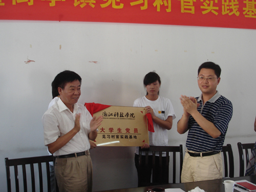 7月25日,申搏大学生党员新农村“育村官”社会实践启动仪式暨“见习村官实践基地”揭牌仪式在诸暨市街亭镇举行。校党委副书记胡浙平出席仪式。共青团诸暨市委领导,街亭镇党委、行政领导,申搏党委组织部、团委负责人,当地大学生村官代表及全体实践团成员共30余人参加。