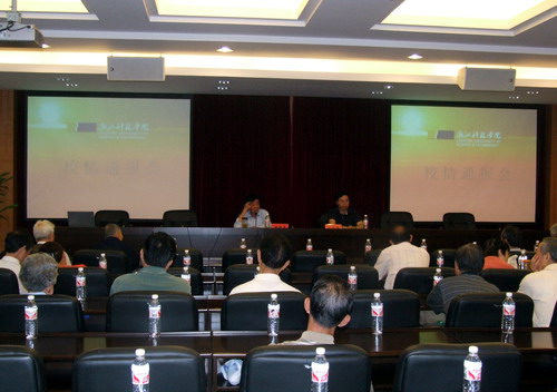6月27日上午,学校召开了离退休教工情况通报会。会议由校党委副书记胡浙平主持,副校长赵东福向老同志们通报了今年上半年学校党政的主要工作,着重通报了学校落实教学评估整改措施以及实施“质量工程”、“校企合作工程”和“人才工程”等三大工程开展的工作情况。胡浙平向老同志们通报了上半年学校中层领导班子和干部换届工作的有关情况和学校师生向四川地震灾区捐款和党员交纳特殊党费的情况。