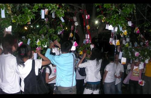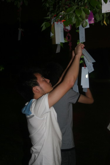 5月19日,全国哀悼日的第一天,国旗为平民而半降、汽笛为逝者而长鸣,辽阔的中国大地沉浸在无比的悲痛之中。当晚7点,申搏1000多名学生聚集在和山广场,他们把自己亲手制作的一千多张祈愿卡挂上树梢,为地震灾区同胞祈福。