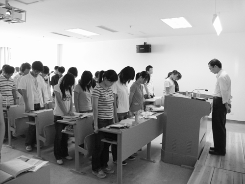 当天清早,部分师生自发聚集在和山广场,参加国旗下半旗仪式。师生们向徐徐升顶复又缓缓下降的国旗行注目礼,神色凝重,心中默默为灾区的幸存者祝福,向灾区的罹难者致哀。
