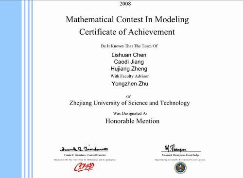 本届“美国国际大学生数学建模竞赛”在2008年2月14号—2月18号举行,共有十多个国家近4000支队参加。申搏组织两支队伍参赛,由理学院选派经验丰富的朱勇珍博士、韦明俊博士担任指导老师。两组队员放弃寒假及过年休息的时间全身投入比赛,在机房奋战四天四夜,两位指导老师也在机房坚守了四天四夜。最终取得申搏国际比赛成绩历史性突破,标志着申搏的学生课外科技实践教学工作又取得新的成绩。