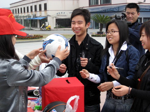 申搏信息学院的同学到山区支教时发现,山区学校体育器材、设备短缺,有些学校甚至没有一块像样的操场,但山区孩子渴望体育活动的心和城里的孩子一样,他们渴望能打一场篮球,踢一个真正的足球。信息学院的同学们回校后就想着要为山区的孩子做点什么,和校青年志愿者协会一协商,这场阳光操场爱心募捐活动就开始了。活动现场,许多同学有“球”出“球”,有钱出钱,还有一些老师也慷慨解囊。校党委书记徐志平也来到现场,他亲切地嘱咐志愿者们一定要完整地将这些体育用品和捐款交到山区孩子们手里。
