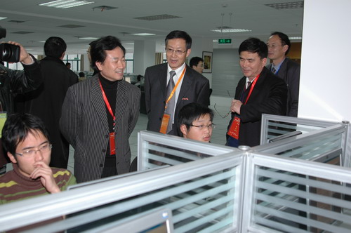 最后,评估专家来到电子阅览室。宽畅的阅览大厅整齐地摆放着210台先进的计算机,部分学生正在上网查找资料。专家细致询问了电子阅览室装备和运行情况。