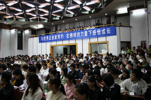 在现场交流中,同学们纷纷提问,“大学生求职应该注意点什么、“女生和男生创业的优势和劣势在哪里”、“您觉得当代大学生身上有哪些闪光点”……孙震诚恳而又睿智的回答使现场气氛达到高潮。面对莘莘学子,孙董的寄语是:人生什么都可以有,但不能有病;人生什么都可以没有,但不能没有钱;人生什么都可以缺,但不能缺德。