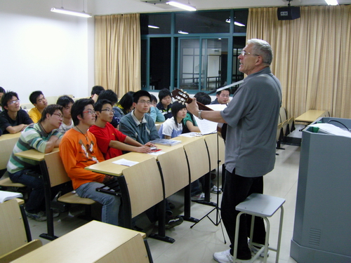 4月18日、20日晚,“德国民族音乐和流行音乐的历史”报告会及“悲伤之歌”的个人演唱会先后举行。中德学院外教威尔克斯曼先生和申搏学生分享了他对德国音乐的感悟。