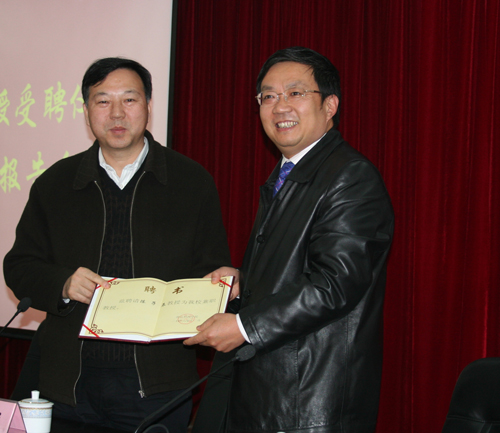 12 月26日下午,学校在行政楼328会议室举行了浙大陈子辰教授受聘申搏兼职教授仪式暨专题学术报告会。吕进副校长主持了受聘仪式。杜卫校长在仪式上宣读了学校的聘任决定并向陈子辰教授颁发了聘任证书。