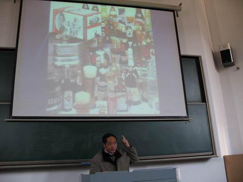金教授在报告一开始向现场的学生提出了“什么是包装,包装工程专业学什么的问题”,紧接着金教授用精美的图片带领同学们进入了包装的世界。食品因为包装变得安全,礼品因为包装而变得华丽,包装在我们生活无处不在,一席话深深吸引了在场的师生。