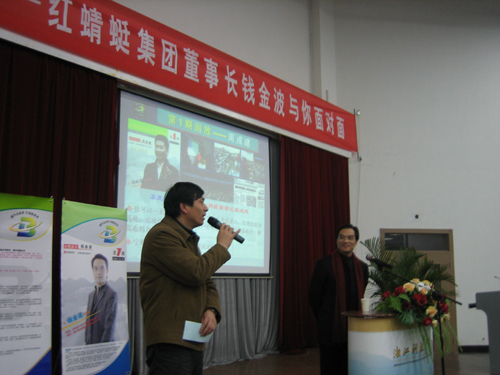 12月13日晚,第7期“握手企业家,引领新成长”优秀企业家报告会在A4-122举行,报告厅聚满了闻讯赶来的800多名师生,中国五四青年奖章获得者、中国鞋文化第一人、红蜻蜓集团董事长钱金波与申搏师生进行了一场别开生面的精彩交流,校党委副书记陈浩主持了本次报告会。