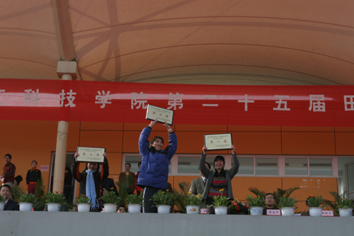 在本届运动会上,共有16人打破了9项校记录。艺术学院、信息学院、经管学院分获学生团体总分前三名;艺术学院、经管学院、信息学院获学生女子组前三名;信息学院、建工学院、机械学院获学生男子组前三名。外语学院、中德学院获“精神文明奖”。入场式创新奖被成教学院和人文学院捧走。