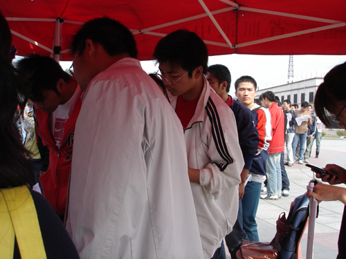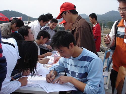活动当天吸引了500多名同学,他们纷纷前来咨询,工作人员细心、准确地回答了同学们有关造血干细胞捐献方面的问题,活动场面异常热烈却井然有序。校党委副书记胡浙平老师莅临现场,对此次活动进行了指导。在《感恩的心》、《爱的奉献》等音乐的感召下,同学们踊跃报名,在流动献血车旁排起了长长的队伍。他们说,能成为一名捐献造血干细胞志愿者是一件无尚光荣的事。
