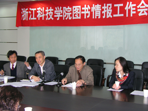 会议听取并审议了图书馆馆长、校图书情报工作委员会副主任委员任志宇关于《图书馆十一五发展规划纲要》的说明、《图书馆新馆建设和进展状况》的报告,听取并审议了图书馆副馆长、校图书情报工作委员会秘书长陈雪飞做的《浙江科技学院文献信息资源建设和管理办法》的报告。