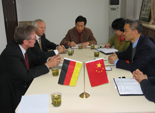 会谈期间,双方各自介绍了本校的办学历史、现状及发展规划,就多种形式的合作交流,特别是国际间科技合作、中德中小型企业的技术服务、硕士生合作培养等事项进行了深入的探讨,并希望能在目前交流的基础上继续扩大交流和提升层次。会谈以后,各位来宾参观了申搏新校区建设,并对此给予了高度评价,对两校合作交流的前景充满了信心。