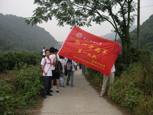 当一天“红军”,走一回“长征”!让我们一起“长征”去!为纪念长征胜利70周年,由校学生会发起的“我的长征路”大型远足活动得到了全校同学的积极响应。10月22日上午7点,申搏530多名同学高举“我的长征路”旗帜,从小和山出发,途径留下、杨家牌楼、石人峰、美人峰、北高峰、老和山、黄龙体育中心、杨公堤、南山路、万松岭路,经过8小时的风雨跋涉,在下午4点胜利抵达云居山革命烈士纪念馆。