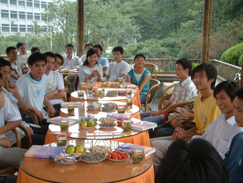 茶话会结束之后,学工部将组织全体参加茶话会的新生把他们与校领导和学长的合影作为中秋礼物寄给他们的父母(亲人)——“爸妈(爷爷奶奶):中秋俺把‘新家的师长和学长’寄回家!”