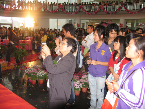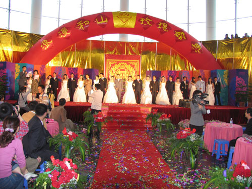 5月18日,小和山校区,霏霏细雨挡不住浓浓喜气,浙江科技学院首届“浪漫和山、玫瑰婚典”婚庆活动隆重举行。12对新人在师生的祝福声中喜结良缘。党委书记徐志平、校长杜卫、党委副书记胡浙平、副校长龚建立、陈根芳、吕进、纪委书记、工会主席鲁凤等校领导,以及新人所在部门的党政领导和分工会主席等出席了婚礼或晚宴。