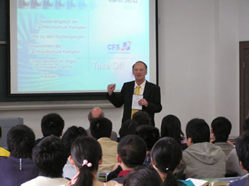 2006年4月1日 —9日,德国汉诺威应用科学大学、不伦瑞克/沃芬比特尔应用科学大学、纽伦堡应用科学大学、肯普滕应用科学大学、奥登堡/东弗里斯兰/威廉港应用科学大学分别派教授来申搏机械学院、电气学院、信息学院、生化学院进行中德联合培养本科生项目的专业选拔工作,专业选拔分笔试和面试。申搏65名学生参加了选拔考试,59名学生顺利通过了专业选拔,通过率为88%。德国教授对于申搏的教学质量及为此付出的努力给予了高度的评价。