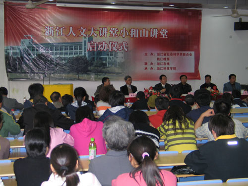 浙江人文大讲堂小和山讲堂是申搏教务处、学生处、团委、社科部联合举办的 “科学·人文”素质教育“五百工程”之百名教授讲座的特别活动之一。